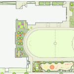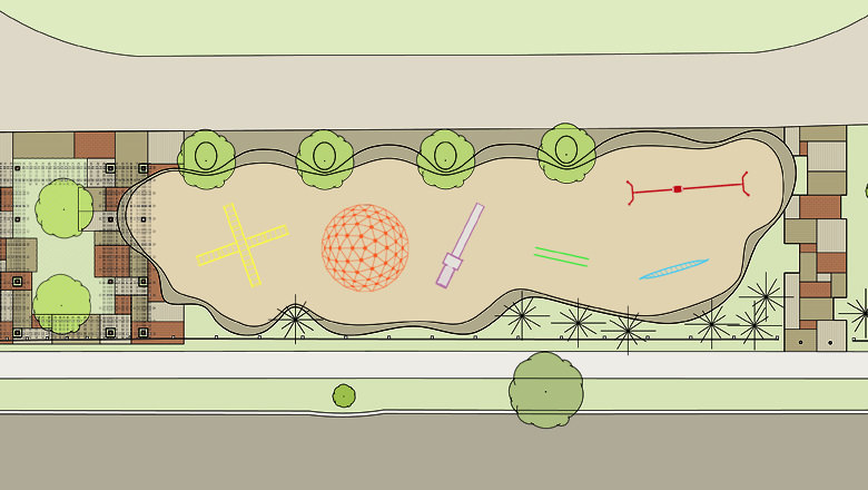 The playground supports a wide range of activities for different age groups. Intimate while larger zones accommodate more boisterous play and sports. A central gathering place invites parents, caregivers and children to meet in an informal town square.