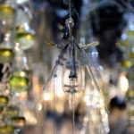 Groves of meshwork columns framed the darkened inner end of this space. Scented wicks and glands attracted visitors to the lower details of these columns, detailed with delicate glass spines that glow in response to approaching visitors. Shivering patterns of vibration and rustling sound moved upward when individual clusters were stimulated by viewers. Reaching outward toward a public entry oriented to the central hall, layers of undulating seaweed-like filter clusters housed protocell flasks. At the uppermost levels, lying just below the roof trusses that enclosed the space, clusters of gauze bladders opened and closed in rolling, tide-like motions, responding to the larger movements of viewers below.